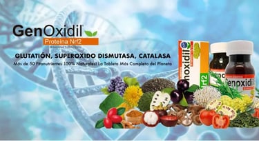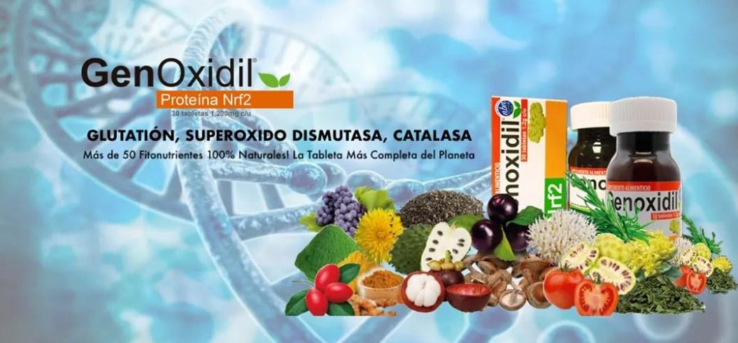 GenOxidil es una fórmula avanzada, elaborada con nanotecnología e hidrólisis con el fin de obtener los mejores resultados en 5 sistemas con un solo producto. GenOxidil, es orgánico 100% natural que complementa efectivamente en todos los procesos de nuestro organismo, es una Megadosis de Fitonutrientes, aminoácidos, proteínas, vitaminas y minerales esenciales que ayudan a mejorar la función mitocondrial y permiten la recuperación celular. Su fórmula activa el Factor de Transcripción Nrf2, que en su función, regula diversos genes y contribuyen en conjunto a reducir el Estrés Oxidativo producido diariamente en cada célula de nuestro Cuerpo, además de la producción de células madre adultas y glutatión.