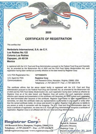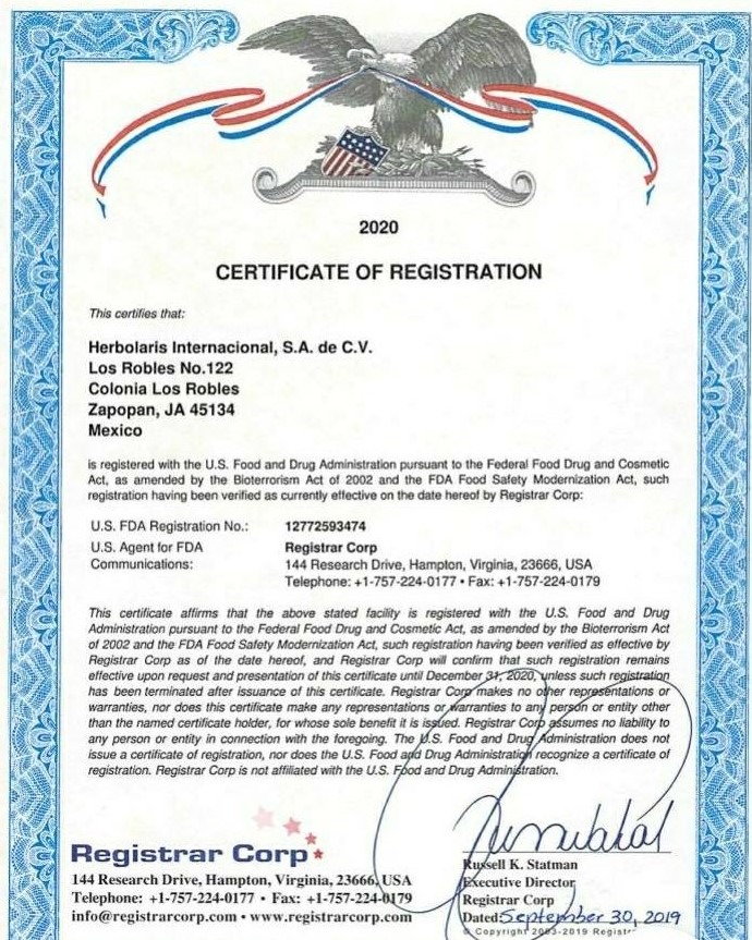 Certificación de la FDA de los EEUU